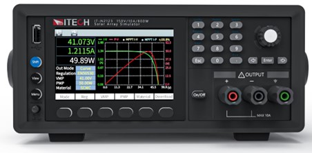 IT-N2100 series solar array simulator is a high-performance DC power supply with fast changing IV curve, which is used to simulate the IV output characteristics of various solar panels under different environments (temperature, light, shadow attenuation,aging degree). High-definition large screen, you can view the simulated solar dynamic and static IV curves in real time. There are four models in the whole series, which are divided into 800W and 1500W. The low-voltage high-current and high-voltage low-current models can meet the requirements of ground testing and aviation testing respectively.